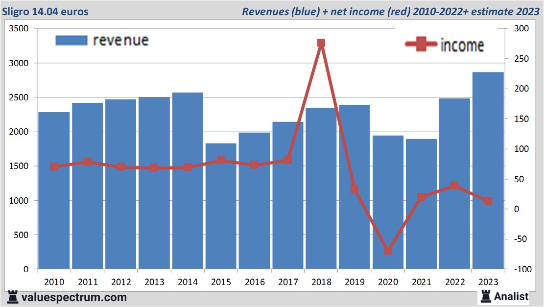 Morgen zal het Nederlandse Sligro haar cijfers over het afgelopen kwartaal aan de pers melden. De gemiddelde verwachting van de omzet van het bedrijf uit over dit jaar ligt volgens de analisten op 2.87 miljard euro. De omzet zou volgens de verwachtingen van de analisten dit jaar dan het hoogste in haar bestaan zijn. Dit is fors meer dan de opbrengsten over 2022 toen de omzet 2.48 miljard euro bedroeg.
