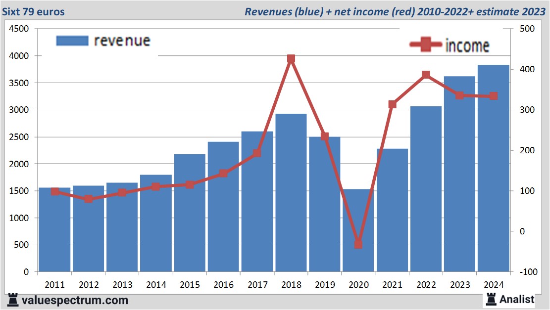 De analisten gaan voor 2024 uit van een nettowinst van 334 miljoen euro. Voor dit jaar ligt de consensus van het resultaat per aandeel op een winst van 7.1 euro. De koerswinstverhouding komt zodoende uit op 11.13.