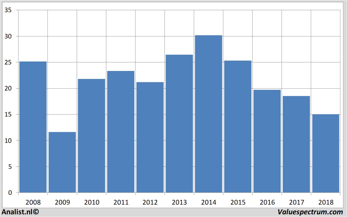 De meeste analisten gaan voor 2018 uit van een nettowinst van 89 miljoen euro. Over dit jaar wordt door het gros van de analisten, zoals gepolst door persbureau Thomson Reuters, een winst per aandeel van 1,4 euro verwacht. De koers-winst-verhouding ligt hiermee op 10,73.