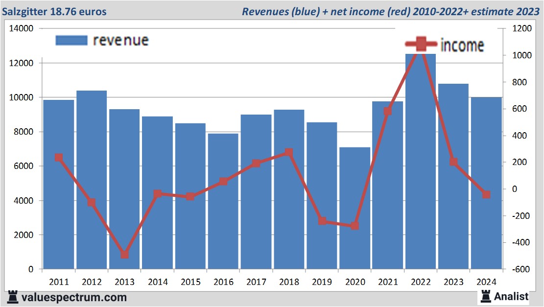 Salzgitter zal aanstaande maandag haar cijfers over het voorbije kwartaal bekend maken. Over 2024 komt de omzet van het bedrijf uit Salzgitter volgens de analisten uit op 9.99 miljard euro. Dit is beperkt minder dan de totale baten over 2023 toen het concern 10.79 miljard euro verdiende.