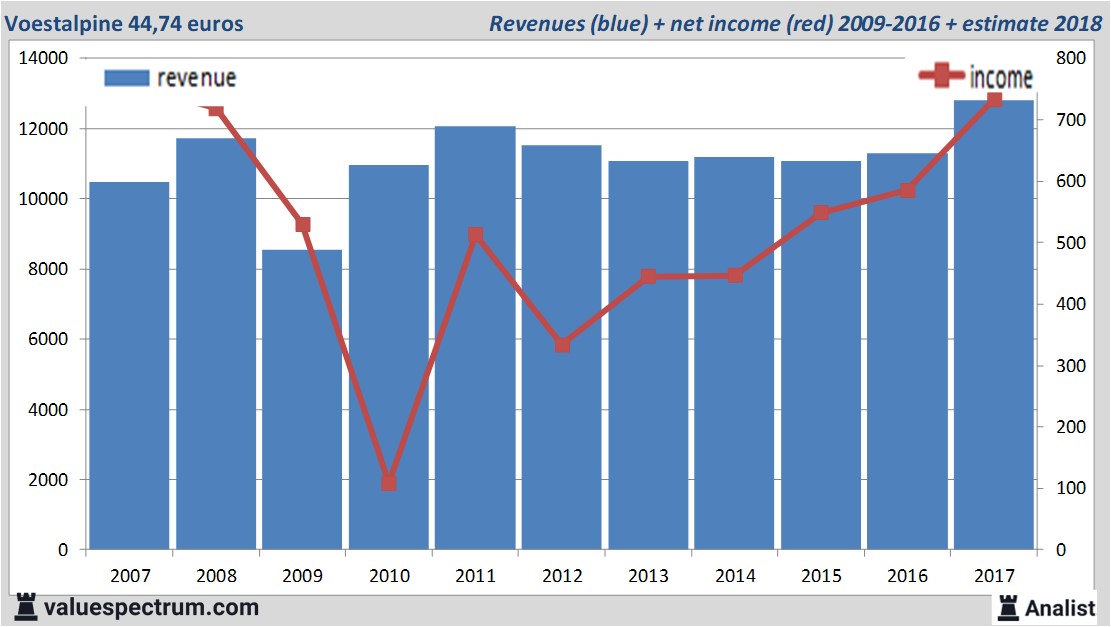 Morgen komt het Oostenrijkse Voestalpine haar resultaten over het afgelopen kwartaal. De omzet van Voestalpine over dit jaar komt uit op 12,8 miljard euro. Zo blijkt uit gemiddelde analistenverwachting. Dit is behoorlijk meer dan de omzet over 2017 toen de omzet 11,29 miljard euro bedroeg.