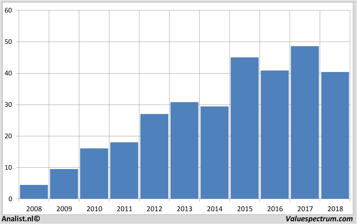 Onderaan de streep rekenen de analisten op een nettowinst van 279 miljoen euro. Gezien de laatste analistenconsensus heeft het bedrijf dit jaar een winst per aandeel van 2,01 euro. De koerswinstverhouding komt zodoende op 20,09 te liggen.