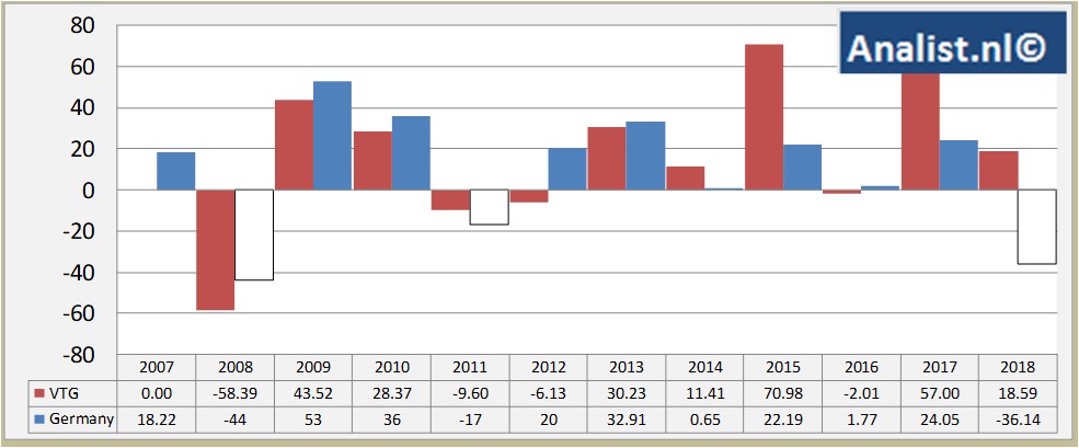 Het aandeel VTG leverde beleggers de afgelopen jaren hele royale winsten op. Het aandeel was de afgelopen 5 jaar met een forse winst van 248 procent één van de best renderende aandelen van Duitsland. Het doorsnee Duitse aandeel nam de afgelopen 5 jaar ruim 206 procent in waarde toe. Andere winnaars over de afgelopen 5 jaar zijn Nemetschek, Patrizia Immobilien en Sartorius.