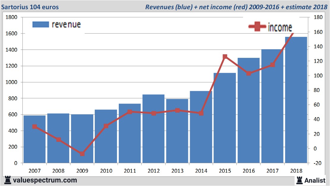 Sartorius gaat morgen haar resultaten over het voorbije kwartaal uitbrengen. De omzet van Sartorius over dit jaar komt uit op 1,56 miljard euro. Zo blijkt uit gemiddelde analistenverwachting. Dit is fors meer dan de omzet over 2017 toen de omzet 1,4 miljard euro bedroeg.