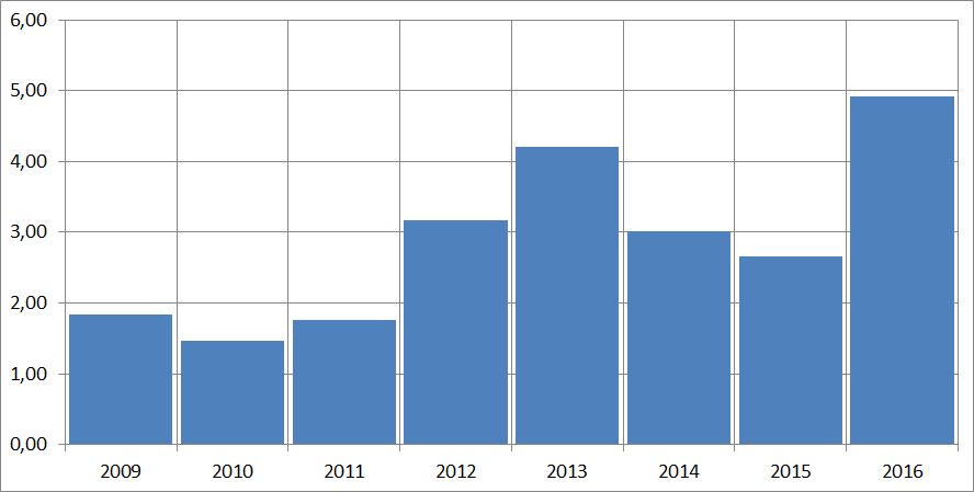 Per aandeel verwachten de analisten een dividend van 0,48 cent. Staples 's dividendrendement komt hiermee uit op 4,89 procent. Het gemiddelde dividendrendement van de handelsbedrijven ligt op een nihile 1,30 procent.