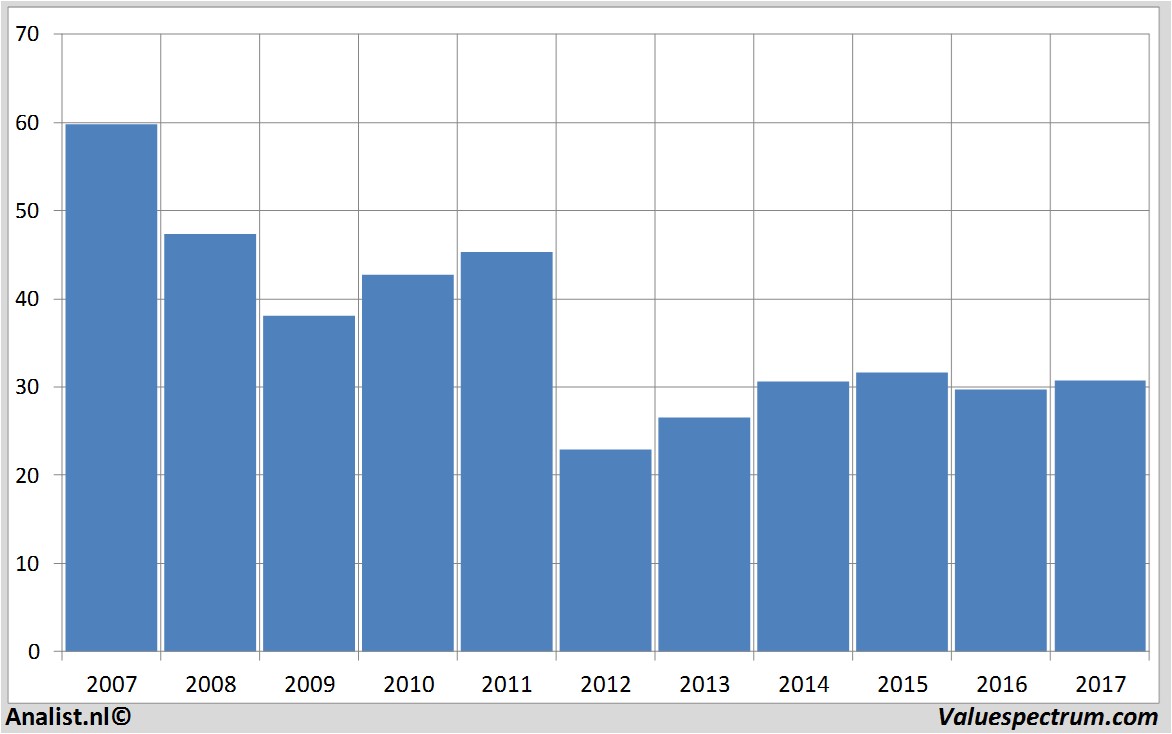Onderaan de streep rekenen de analisten op een nettowinst van 683 miljoen euro. Over dit jaar wordt door het gros van de analisten een winst per aandeel van 2,07 euro verwacht. Hiermee komt de koers/winst-verhouding op 14,83 te liggen.
