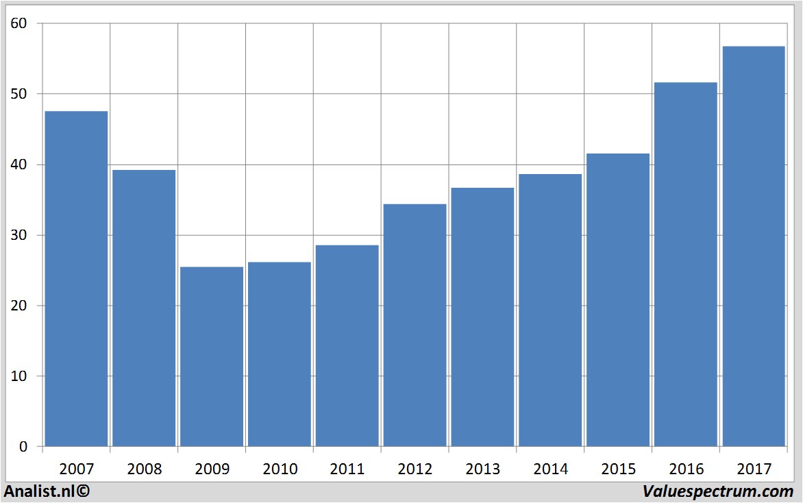 De analisten rekenen voor 2017 op een recordnettowinst van 674 miljoen dollar. Over dit jaar komt het bedrijf volgens het gros van de analisten uit op een winst per aandeel van 2,77 dollar. Hiermee komt de koers/winst-verhouding op 20,48 te liggen.