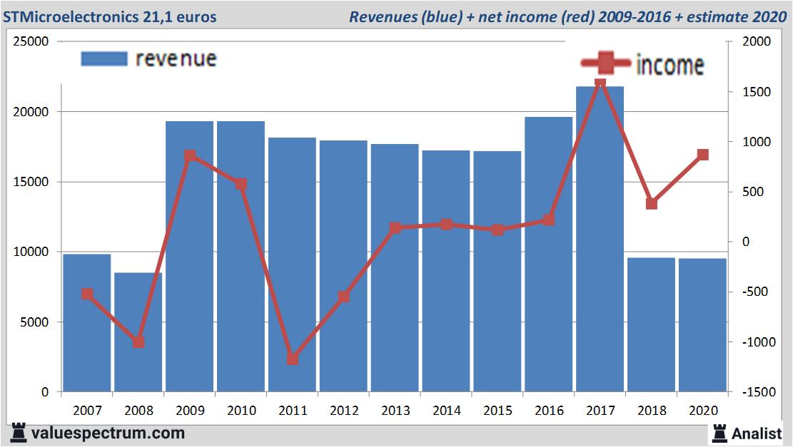STMicroelectronics publiceert morgen haar resultaten over het afgelopen kwartaal. De omzet van STMicroelectronics over dit jaar komt uit op 9,52 miljard euro. Zo blijkt uit gemiddelde analistenverwachting. Dit is beperkt minder dan de omzet over 2018 toen het concern 9,56 miljard euro verdiende.