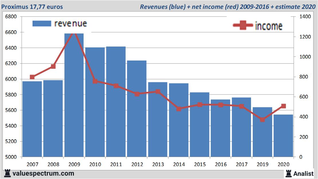 Klikt u hier voor dividend aandeel Proximus. Om 10.44 stond het aandeel 0,23 procent lager op 17,77 euro.
