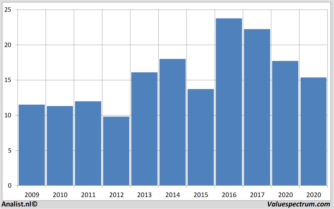Wat betreft het resultaat rekenen de analisten op een nettowinst van 39 miljoen euro. Volgens de laatste rondgang langs de analisten stevent het bedrijf af op een winst per aandeel van 56 cent. De koerswinstverhouding komt zodoende op 27,46 te liggen.