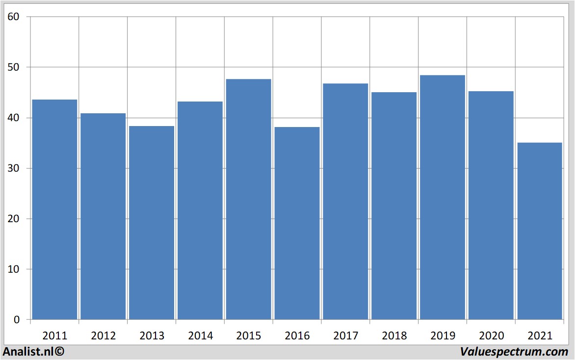 Op basis van het huidige aantal uitstaande aandelen bedraagt de marktkapitalisatie van het bedrijf 91.47 miljard euro. Het aandeel was de afgelopen 12 maanden vrij bewegelijk. Sinds een jaar terug staat het aandeel 16 procent in het rood. Het aandeel koerste het laatste jaar tussen de 21 en de 46 euro.