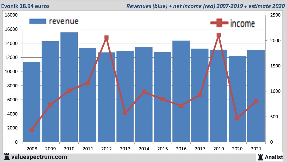 Evonik gaat morgen haar resultaten over het voorbije kwartaal uitbrengen. Over het huidige boekjaar komt de omzet van het bedrijf uit Essen volgens de analisten uit op 13.02 miljard euro. Dit is vrij beperkt meer dan de omzet over 2020 toen het concern 12.2 miljard euro verdiende.