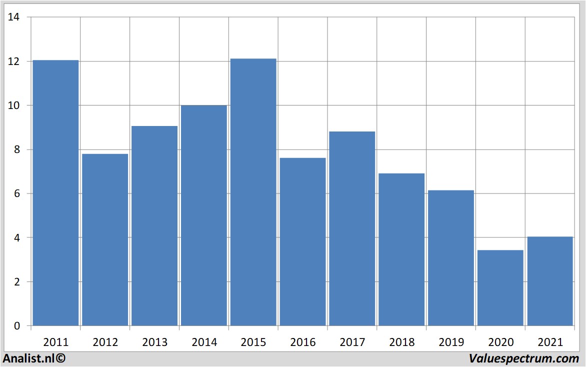 De analisten gaan voor 2021 uit van een nettowinst van 2.32 miljard euro. Volgens de jongste analistenconsensus houdt het bedrijf over dit jaar een winst per aandeel van 55 cent over. De koerswinstverhouding komt zodoende op 7.35 te liggen.