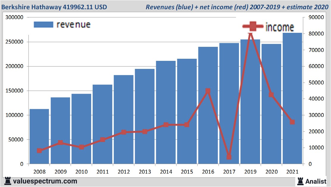 De analisten gaan voor 2021 uit van een nettowinst van 25.72 miljard dollar. Over dit jaar houdt het bedrijf volgens de analisten een winst per aandeel van 17063.14 dollar over. De koerswinstverhouding bedraagt hierdoor 24.61.