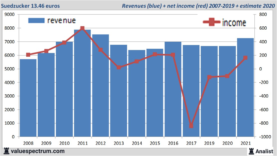 Over dit jaar ligt de verwachting van het dividend op 29 cent. Suedzucker 's dividendrendement bedraagt dus momenteel 2.15 procent. Het gemiddelde dividendrendement van de voedingssector ligt op een aantrekkelijke 2.31 procent.