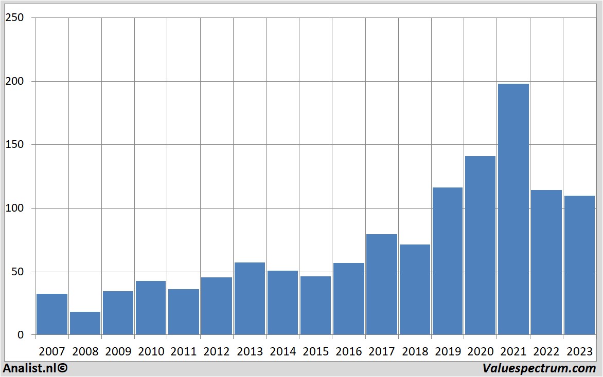 De meeste analisten gaan voor 2023 uit van een nettowinst van 671 miljoen euro. Over dit jaar wordt door het gros van de analisten, zoals gepolst door persbureau Thomson Reuters, een winst per aandeel van 3.43 euro verwacht. De koerswinstverhouding bedraagt hierdoor 32.03.