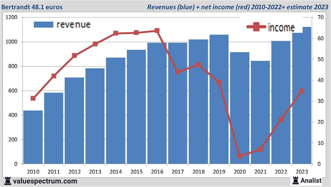 Per aandeel verwachten de analisten een dividend van 1.36 euro. Bertrandt 's dividendrendement komt neer op 2.83 procent. Het gemiddelde dividend van de gezondheidsproducten- en diensten ligt op een prima 1.91 procent. Het is de verwachting dat het bedrijf op 23 februari dat dividend van 1.36 euro uit zal gaan keren.