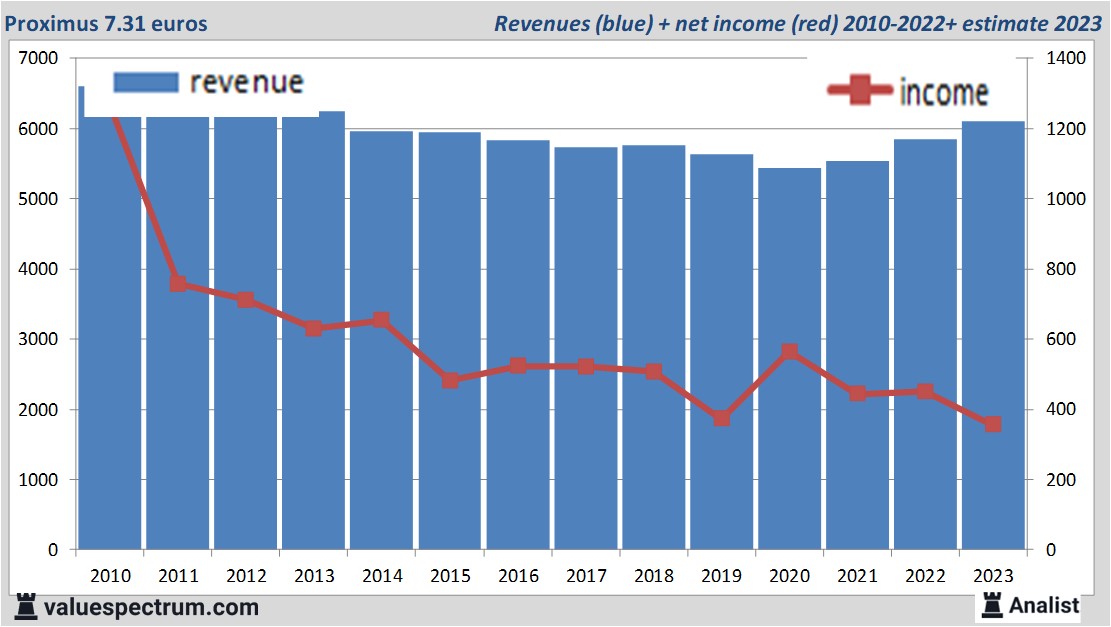 Beleggers in het aandeel Proximus kunnen rekenen op een fors dividend. Op basis van de recente analistentaxaties heeft het aandeel Proximus nu één van de hoogste dividendrendementen van de Belgische beurs. Per aandeel wordt door de analisten een dividend van 1.1 euro verwacht. Het dividendrendement ligt zodoende op 15.05 procent. Gemiddeld levert een aandeel in de vaste lijn communicatiebedrijven levert een aantrekkelijk dividendrendement van circa 5.03 procent op.