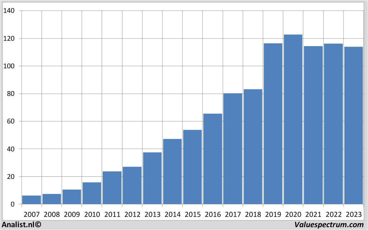 De meeste analisten gaan voor 2023 uit van een nettowinst van 1.67 miljard dollar. Volgens de jongste analistenconsensus houdt het bedrijf over dit jaar een winst per aandeel van 4.97 dollar over. Op basis hiervan komt de koerswinstverhouding uit op 22.94.